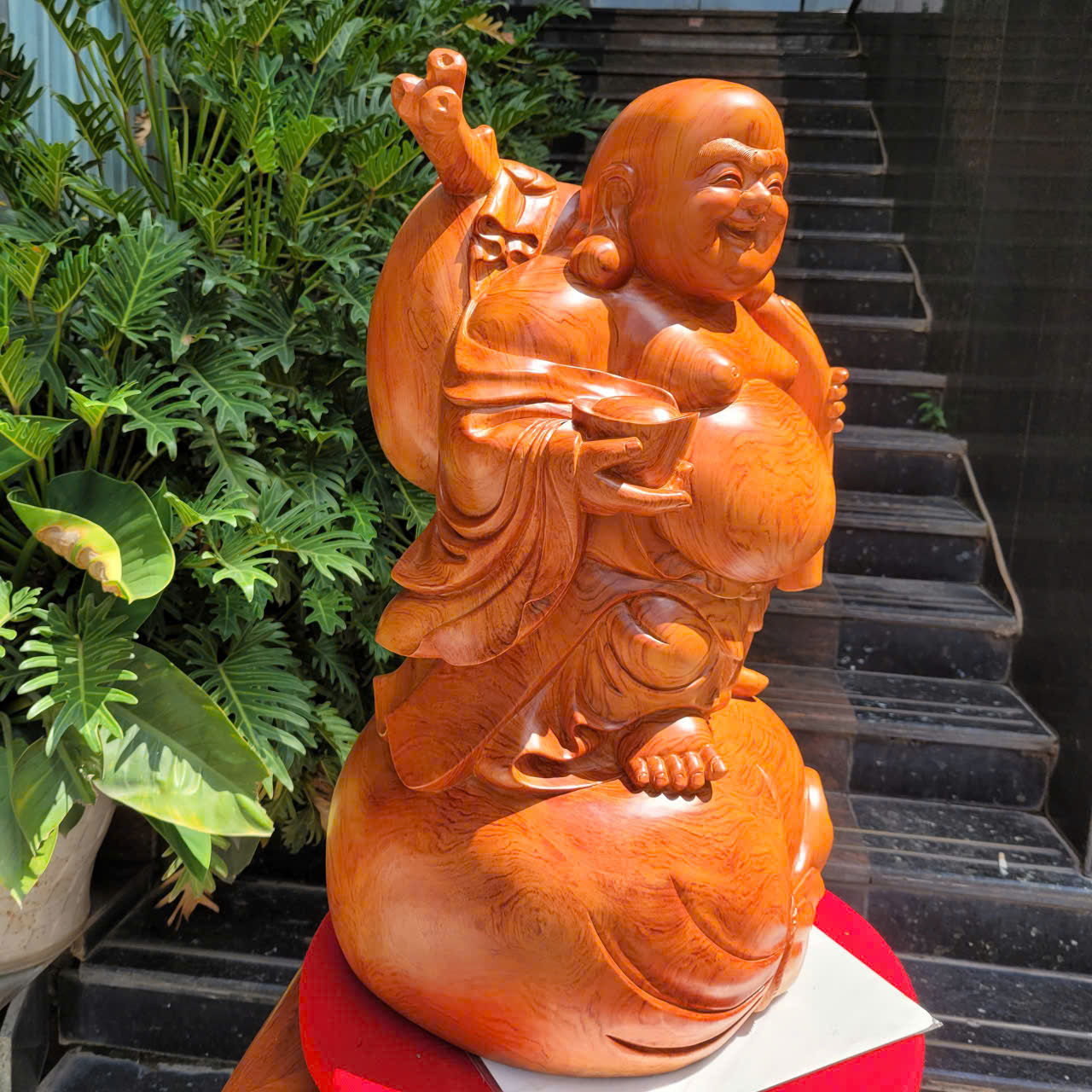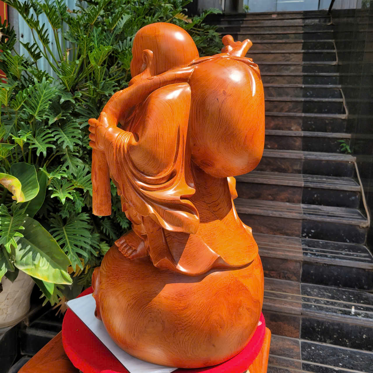 Tượng Di Lặc gỗ hương đá – Biểu tượng tài lộc và hạnh phúc được làm từ gỗ hương đá nguyên khối lớn với đường kính lên đến 40 phân mầu sắc rất đẹp, nổi bật với vân gỗ dày đặc và sắc nét, rỗ ràng, đẹp tựa như tranh vẽ. Gỗ hương đá dù mới được du nhập vào việt nam chưa quá lâu nhưng đã đủ để chinh phục niềm tin của khách hàng với vẻ đẹp tự nhiên , chất gỗ tốt, độ bền cao và đặc biệt giá thành không quá cao, rất phù hợp với mọi người tiêu dùng, cho họ thêm nhiều sự lựa chọn.