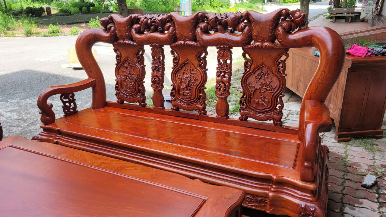 Phần vách được các nghệ chất chế tác rất công phu,được chọn lựa từ những tấm gỗ liền nguyên khối độ dày khủng ,dưới bàn tay tài hoa của các nghệ nhân,vách ghế dược trạm khắc tinh vi với họa tiết là hoa văn tứ quý:tùng-cúc-trúc-mai,cùng với thiết kế cong và các đường viền bo uốn dẻo tạo nên vẻ đẹp mang đày tính nghệ thuật,vừa mang dáng cổ xưa nhưng vẫn mang nét hiện đại.