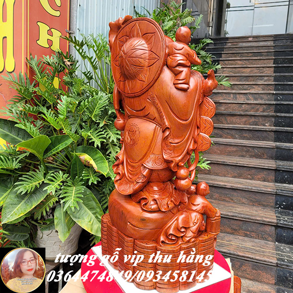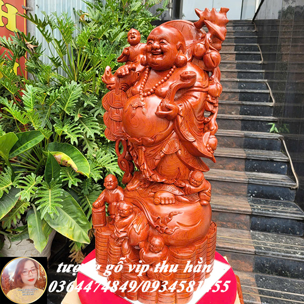 Tượng Di Lặc Ngũ Phúc Đứng Gỗ Hương Đá – Biểu Tượng Của May Mắn được sản xuất tại cơ sở tượng gỗ vip thu - hằng { đồ gỗ đồng kỵ bích hiển} quê hương đồng kỵ, cái nôi của nghề mộc truyền thống lâu đời nổi danh khắp cả nước. Tại nơi đây, các nghệ nhân tài hoa với đôi tay vàng trong nghề trạm khắc gỗ thủ công truyền thống đã thổi hồn tinh hoa nghệ thuật vào trong từng nét trạm khắc để tạo nên những sản phẩm kinh điển, những pho tượng gỗ đạt tới độ chân thực cao nhất, có hồn và đậm chất nghệ thuật.