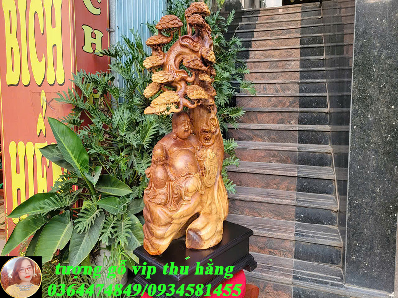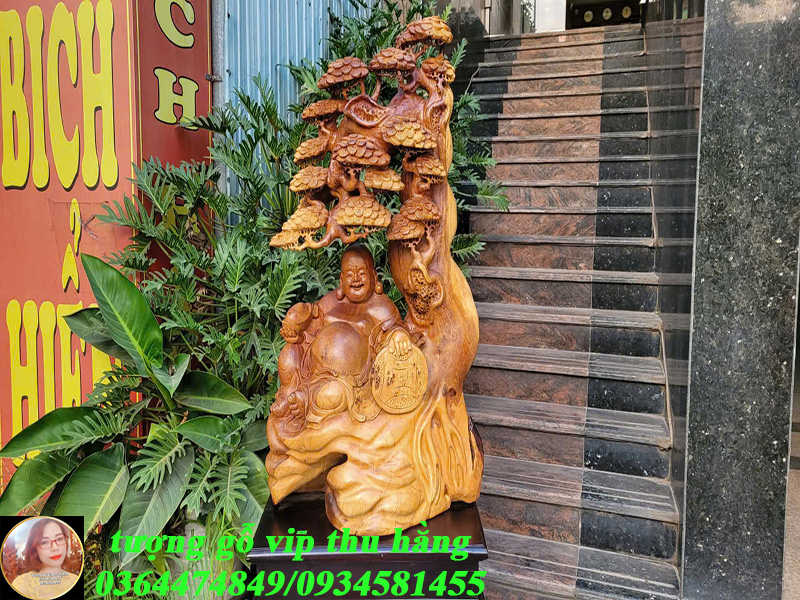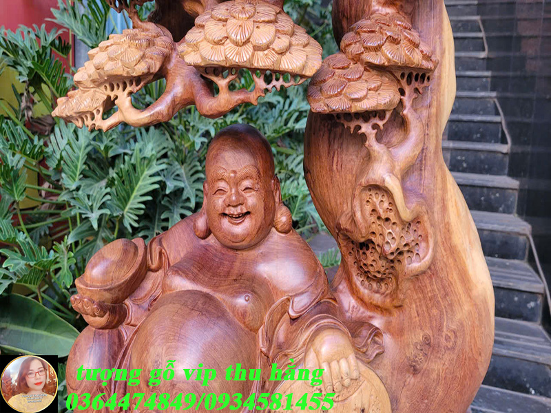Tượng Di Lặc ngồi gốc tùng gỗ hương ta của tượng gỗ vip thu hằng được các nghệ nhân thổi hồn vào trong từng đường nét bay bổng, mềm mại và uyển chuyển đó là sự kết hợp khéo léo giữa nghệ thuật điêu khắc truyền thần cổ truyền và kĩ thuật đục nổi kênh bong hiện đại và cao cấp đem đến một tác phẩm nghệ thuật sinh động, có hồn, rất chân thực khiến cho quý khách hàng yêu thích ngay từ cái nhìn ban đầu.