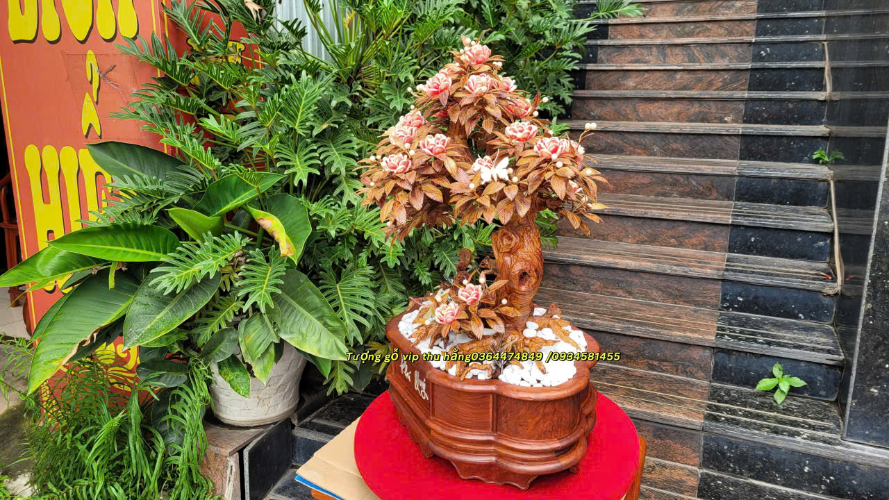 Chậu cây được làm từ gỗ hương đá,một loại gỗ cũng vô cùng cao cấp và quý hiếm,có ngoại hình rất giống gỗ xưa. Được trạm khắc tinh xảo,mô tả chân thực và rõ nét, các đường nét uốn lượn,mềm mại,cấu trúc chăc chắn,hài hòa.