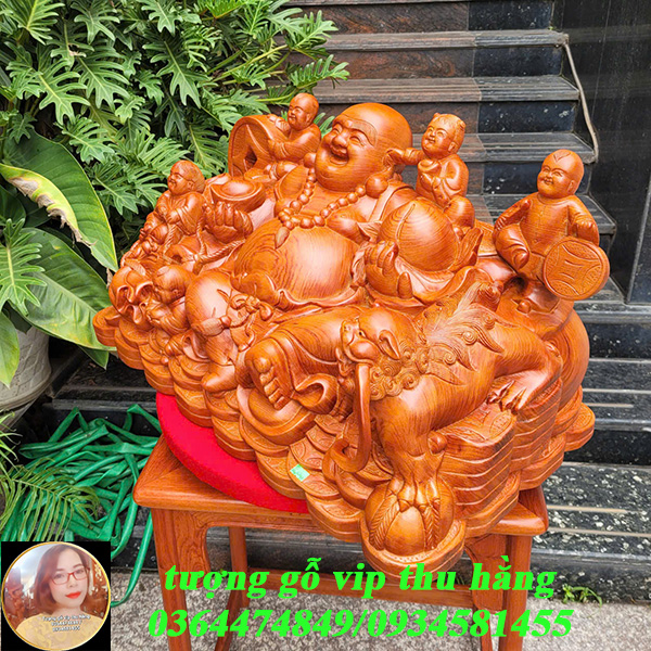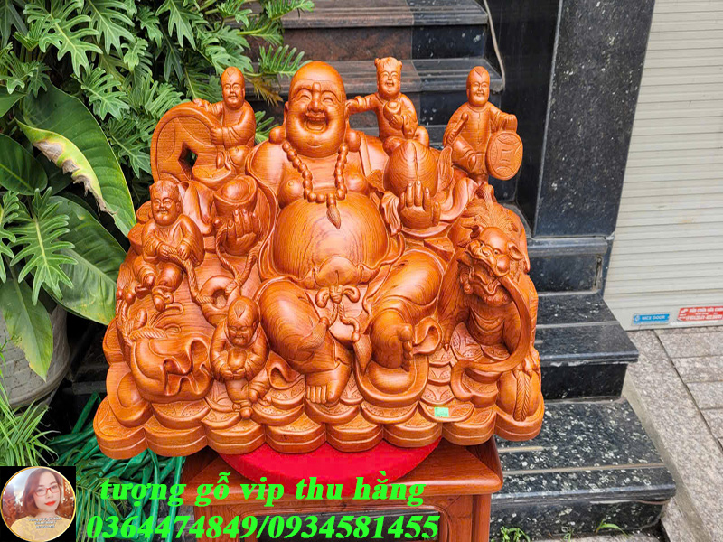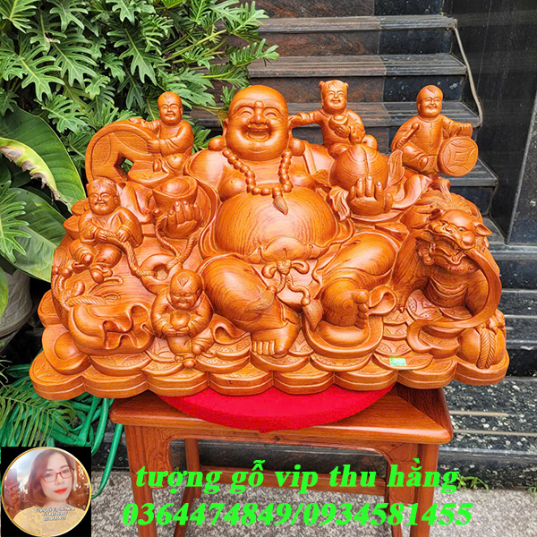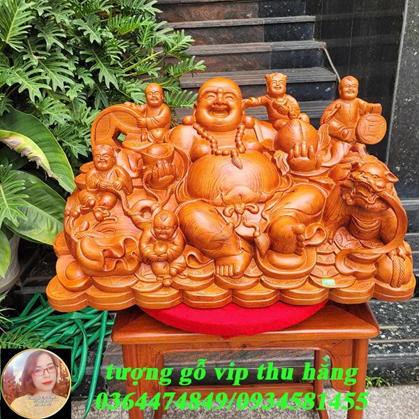 Tượng gỗ vip thu hằng có đội ngũ thợ chuyên nghiệp ở tất cả các khâu trong quá trình gia công chế tác tượng Di Lặc ngũ phúc ngồi gỗ hương đá , kết hợp với những nghệ nhân tài hoa lâu lắm đúc kết những tinh hoa gia truyền của làng nghề đem thổi hồn vào trong từng đường nét trạm khắc tinh xảo để tạo ra những tác phẩm nghệ thuật kinh điển, đảm bảo đẹp sắc nét, có hồn, chân thực và sinh động.