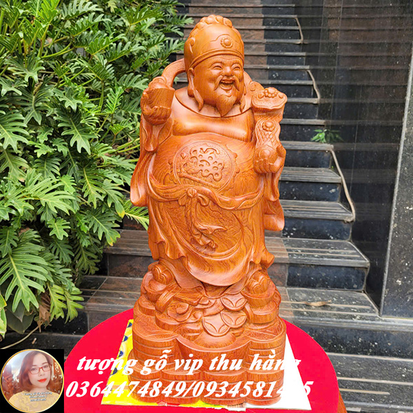 Tượng Thần Tài gỗ hương đá cao cấp đã được các nghệ nhân của cơ sở tượng gỗ vip thu hằng chau chuốt, tỉ mỉ, gọt rũa công phu khắc họa rõ nét từng hoa văn họa tiết, từ khuôn mặt đến trang phục , tư thế của hình tượng Thần Tài, mang lại cảm giác rát thực, rất sinh động.