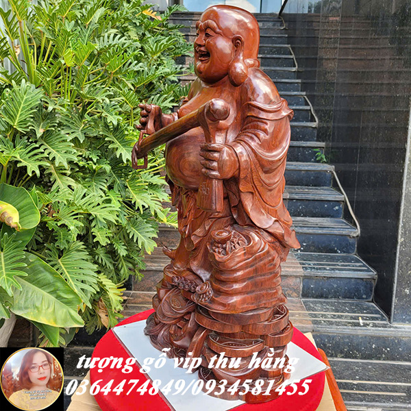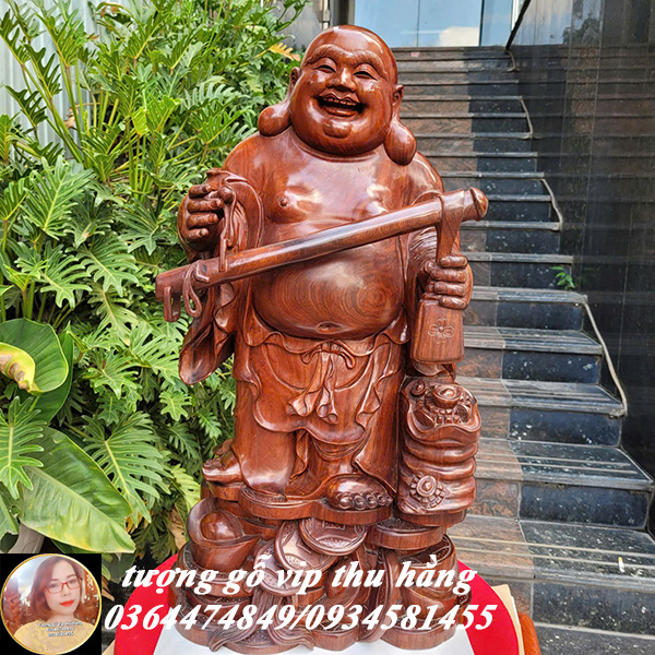 Tượng di lặc đứng trên đống tiền , vàng biểu tượng cho sự may mắn, tài lộc, tiền bạc dư giả, cuộc sống ấm no, hạnh phúc , sự nghiệp thăng tiến, phát tài, phát lộc.