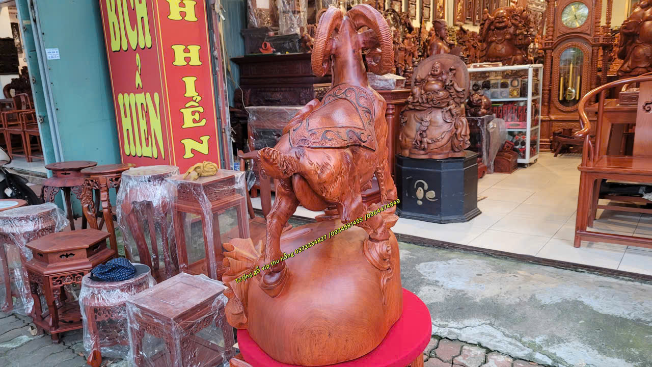 Tượng Dê gỗ là biểu tượng cho sự hiền hòa may mắn.